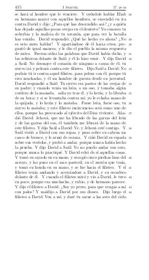 casco de bronce, y le armó de coraza. Y ciñó David su espada