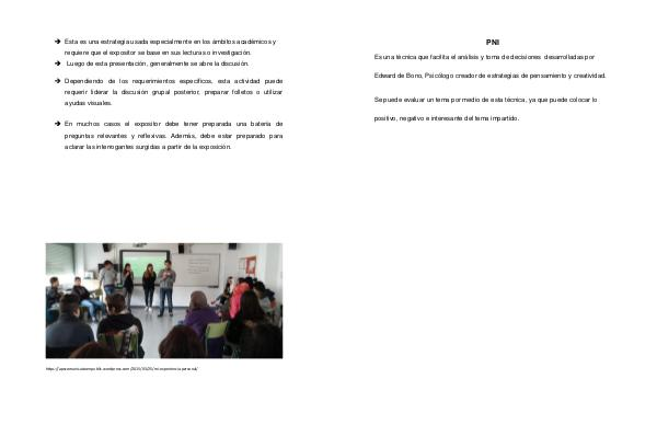 requerir liderar la discusión grupal posterior, preparar folletos o utilizar