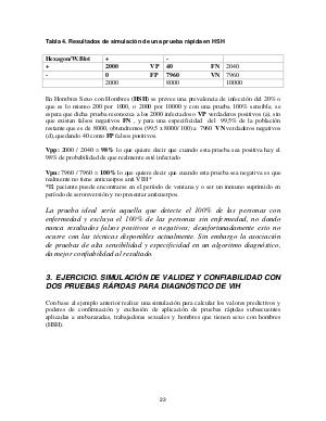 Tabla 4. Resultados de simulación de una prueba rápida en HSH