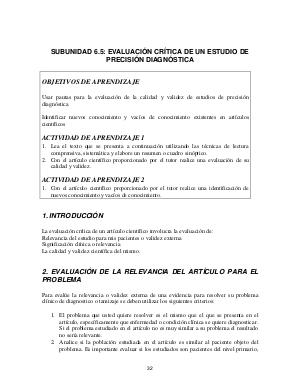 SUBUNIDAD 6.5: EVALUACIÓN CRÍTICA DE UN ESTUDIO DE PRECISIÓN DIAGNÓSTICA