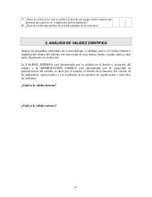 significación clínica del artículo con una escala de muy buena, buena, regular, mala y muy