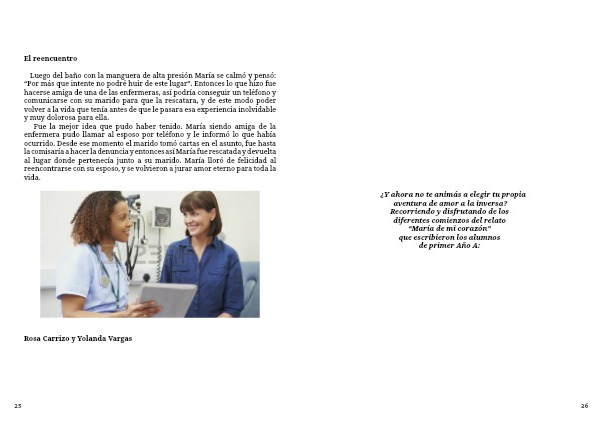 Luego del baño con la manguera de alta presión María se calmó y pensó: “Por más que intente no podré huir de este lugar”. Entonces lo que hizo fue hacerse amiga de una de las enfermeras, así podría conseguir un teléfono y comunicarse con su marido para que la rescatara, y de este modo poder volver a la vida que tenía antes de que le pasara esa experiencia inolvidable y muy dolorosa para ella.