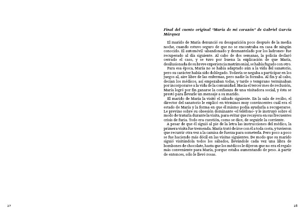 Final del cuento original “María de mi corazón” de Gabriel García Márquez