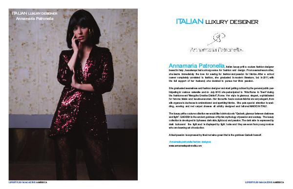 ITALIAN LUXURY DESIGNER Annamaria Patronella LIFESTYLES MAGAZINE AMERICA