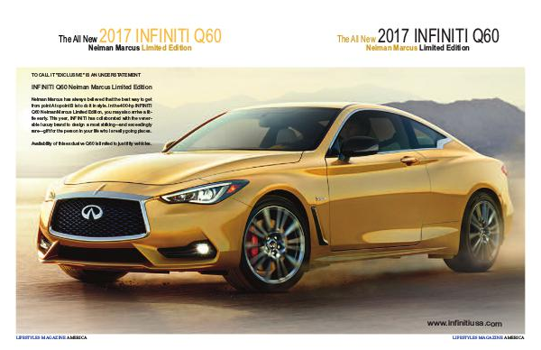 Q60 neiman Marcus Limited Edition, you may also arrive a little early. this year, InFInItI has collaborated with the venerable luxury brand to design a most striking—and exceedingly