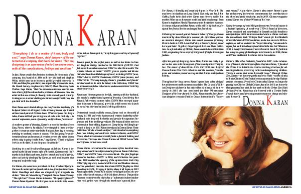 soul,” says Donna Karan, chief designer of the international company that bears her name. “For me,