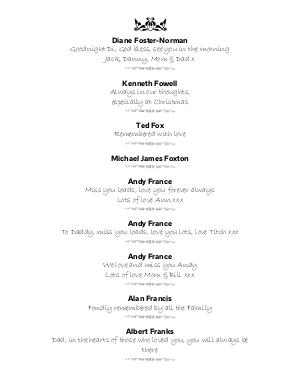 To Daddy, miss you loads, love you lots, love Titch xxx