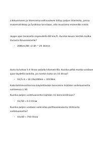 Auto kuluttaa 5.4 litraa sadalla kilometrillä. Kuinka pitkä matka voidaan