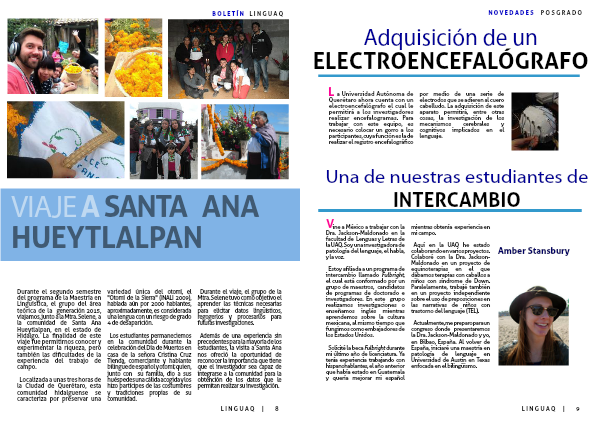 a Universidad Autónoma de Querétaro ahora cuenta con un electroencefalógrafo el cual le permitirá a los investigadores realizar encefalogramas. Para trabajar con este equipo, es necesario colocar un gorro a los participantes, cuya función es la de realizar el registro encefalográfico por medio de una serie de electrodos que se adieren al cuero cabelludo. La adquisición de este aparato permitirá, entre otras cosas, la investigación de los mecanismos cerebrales y cognitivos implicados en el lenguaje.