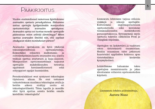 Vuoden ensimmäisessä numerossa käsittelemme avaruuden opetusta peruskouluissa. Haluamme auttaa opettajia hyödyntämään monipuolisia opetusmetodeja avaruuden opetuksessa. Avaruuden opetus voi tuottaa monelle opettajalle päänvaivaa: miten selittää äärettömyys? Miten opettaa avaruuden ilmiöitä niin, että oppilaat omaksuvat niiden monitahoiset piirteet?