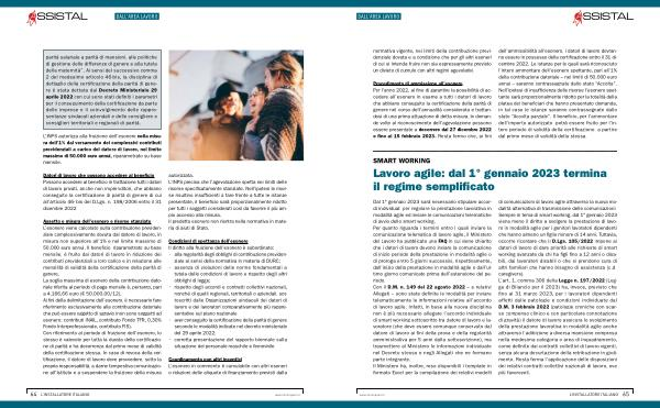Dal 1 ° gennaio 2023 sarà necessario stipulare accordi individuali per regolare la prestazione lavorativa in modalità agile ed inviare le comunicazioni telematiche di avvio dello smart working . Per quanto riguarda i termini entro i quali inviare la comunicazione telematica di lavoro agile , il Ministero del Lavoro ha pubblicato una FAQ in cui viene chiarito che i datori di lavoro devono inviare la comunicazione di inizio periodo della prestazione in modalità agile o di proroga entro 5 giorni successivi , rispettivamente , dall ’ inizio della prestazione in modalità agile o dall ’ ultimo giorno comunicato prima dell ’ estensione del periodo . Con il D . M . n . 149 del 22 agosto 2022 – e relativi Allegati – sono state definite le modalità per inviare telematicamente le informazioni relative all ’ accordo di lavoro agile . Infatti , in base alla nuova disciplina non è più necessario allegare l ’ accordo individuale di smart working sottoscritto tra datore di lavoro e lavoratore ( che deve essere comunque conservato dal datore di lavoro ai fini della prova e della regolarità amministrativa per 5 anni dalla sottoscrizione ), ma trasmettere al Ministero le informazioni individuate nel Decreto stesso e negli Allegati che ne formano parte integrante . Il Ministero ha , inoltre , reso disponibili i template in formato Excel per la compilazione dei relativi modelli di comunicazioni di lavoro agile attraverso la nuova modalità alternativa di trasmissione delle comunicazioni . Sempre in tema di smart working , dal 1 ° gennaio 2023 viene meno il diritto a svolgere la prestazione di lavoro in modalità agile per i genitori lavoratori dipendenti che hanno almeno un figlio minore di 14 anni . Tuttavia , occorre ricordare che il D . Lgs . 105 / 2022 impone ai datori di lavoro di dare priorità alle richieste di smart working avanzate da chi ha figli fino a 12 anni o disabili , dai lavoratori disabili o che si prendono cura di altri familiari che hanno bisogno di assistenza ( c . d . caregivers ). L ’ art . 1 , comma 306 della Legge n . 197 / 2022 ( Legge di Bilancio per il 2023 ) ha , invece , previsto che fino al 31 marzo 2023 , per i lavoratori dipendenti affetti dalle patologie e condizioni individuate dal D . M . 3 febbraio 2022 ( patologie croniche con scarso compenso clinico e con particolare connotazione di gravità ) il datore di lavoro assicura lo svolgimento della prestazione lavorativa in modalità agile anche attraverso l ’ adibizione a diversa mansione compresa nella medesima categoria o area di inquadramento , come definite dai contratti collettivi di lavoro vigenti , senza alcuna decurtazione della retribuzione in godimento . Resta ferma l ’ applicazione delle disposizioni dei relativi contratti collettivi nazionali di lavoro , ove più favorevoli .