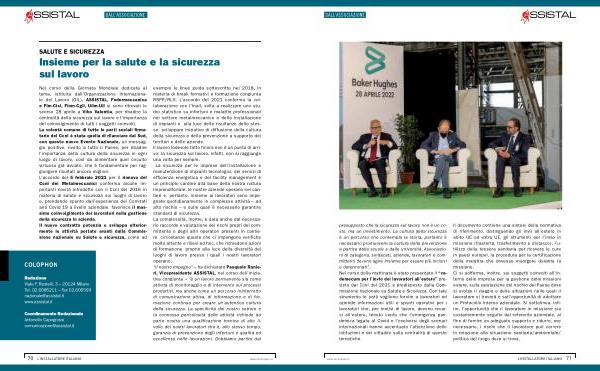 Coordinamento Redazionale Antonello Capogrossi comunicazione @ assistal . it esempio le linee guida sottoscritte nel 2018 , in materia di break formativi e formazione congiunta RSPP / RLS . L ’ accordo del 2021 conferma la collaborazione con l ’ Inail , volta a realizzare uno studio statistico su infortuni e malattie professionali nel settore metalmeccanico e della installazione di impianti e , alla luce delle risultanze dello stesso , sviluppare iniziative di diffusione della cultura della sicurezza e della prevenzione a supporto dei territori e delle aziende . Il lavoro lodevole fatto finora non è un punto di arrivo : la sicurezza sul lavoro , infatti , non si raggiunge una volta per sempre . La sicurezza per le imprese dell ’ installazione e manutenzione di impianti tecnologici , dei servizi di efficienza energetica e del facility management è un principio cardine alla base della nostra natura imprenditoriale : le nostre aziende operano nei cantieri e , pertanto , insieme ai lavoratori sono impegnate quotidianamente in complesse attività – ad alto rischio – e sulle quali è necessario garantire standard di sicurezza . La complessità , inoltre , è data anche dal necessario raccordo e valutazione dei rischi propri del committente o degli altri operatori presenti in cantiere , circostanze queste che ci impongono verifiche molto attente e rilievi ad hoc , che richiedono azioni di formazione , proprio alla luce della diversità dei luoghi di lavoro presso i quali i nostri lavoratori operano . “ Il nostro impegno ” – ha dichiarato Pasquale Ranieri , Vicepresidente ASSISTAL , nel corso dell ’ iniziativa congiunta – “ è un lavoro permanente sia come attività di monitoraggio e di intervento sui processi produttivi , ma anche come un percorso ininterrotto di comunicazione attiva , di informazione e di formazione continua per creare un ’ autentica cultura della sicurezza . La specificità del nostro settore e la connessa pericolosità delle attività richiede da parte nostra una qualificazione tecnica di alto livello dei nostri lavoratori che è , allo stesso tempo , garanzia di prevenzione degli infortuni e qualità ed eccellenza nelle lavorazioni . Dobbiamo partire dal