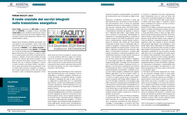 Forum Facility , organizzato da ISSA Pulire in partnership con ASSISTAL , si svolgerà a Roma il 3 e 4 dicembre 2024 presso l ’ Auditorium Antonianum : sarà un evento dedicato al settore dei servizi integrati in Italia , un luogo di incontro per professionisti , imprese e committenti pubblici e privati .