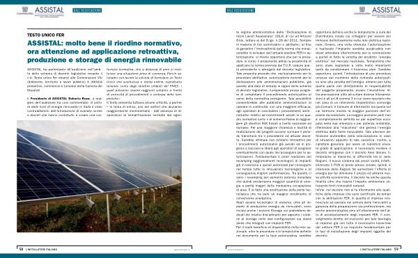 ASSISTAL : molto bene il riordino normativo , ora attenzione ad applicazione retroattiva , produzione e storage di energia rinnovabile