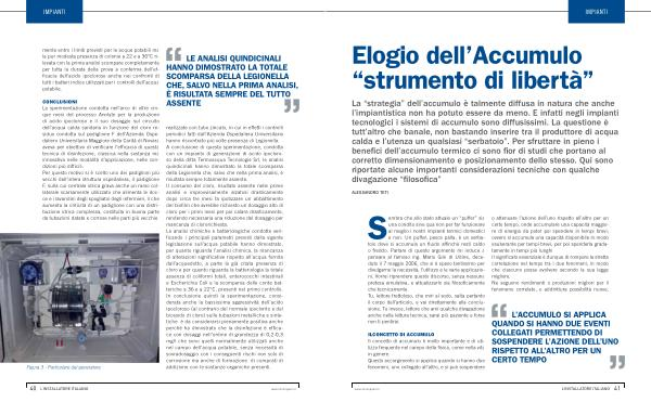 La “ strategia ” dell ’ accumulo è talmente diffusa in natura che anche l ’ impiantistica non ha potuto essere da meno . E infatti negli impianti tecnologici i sistemi di accumulo sono diffusissimi . La questione è tutt ’ altro che banale , non bastando inserire tra il produttore di acqua calda e l ’ utenza un qualsiasi “ serbatoio ”. Per sfruttare in pieno i benefici dell ’ accumulo termico ci sono fior di studi che portano al corretto dimensionamento e posizionamento dello stesso . Qui sono riportate alcune importanti considerazioni tecniche con qualche divagazione “ filosofica ”