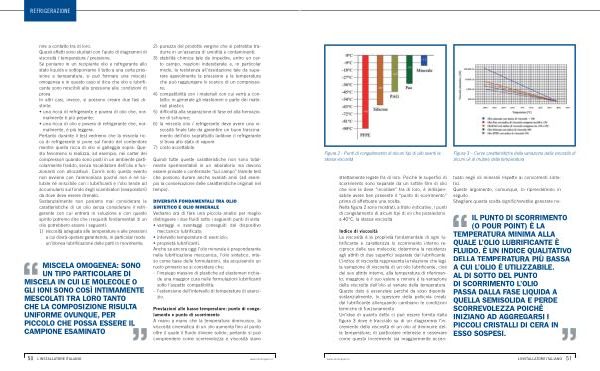 nire a contatto tra di loro . Questi effetti sono studiati con l ’ aiuto di diagrammi di viscosità / temperatura / pressione . Se poniamo in un recipiente olio e refrigerante allo stato liquido e sottoponiamo il tutto a una certa pressione e temperatura , si può formare una miscela omogenea e in questo caso si dice che olio e lubrificante sono miscibili alla pressione alle condizioni di prova . In altri casi , invece , si possono creare due fasi distinte :