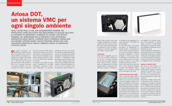 NEGLI ULTIMI ANNI LA VMC STA GUADAGNANDO SEMPRE PIÙ POPOLARITÀ COME SOLUZIONE PER MIGLIORARE LA QUALITÀ DELL ’ ARIA ALL ’ INTERNO DI ABITAZIONI E AMBIENTI DI LAVORO , CON EFFETTI TANGIBILI SUL BENESSERE DELLE PERSONE E SULL ’ EFFICIENZA ENERGETICA DEGLI EDIFICI . LADDOVE NON È POSSIBILE INSTALLARE UN SISTEMA CENTRALIZZATO , VALSIR PROPONE ARIOSA DOT , UNA SOLUZIONE DEDICATA AI SINGOLI AMBIENTI IDEALE IN ABITAZIONI O PICCOLI UFFICI