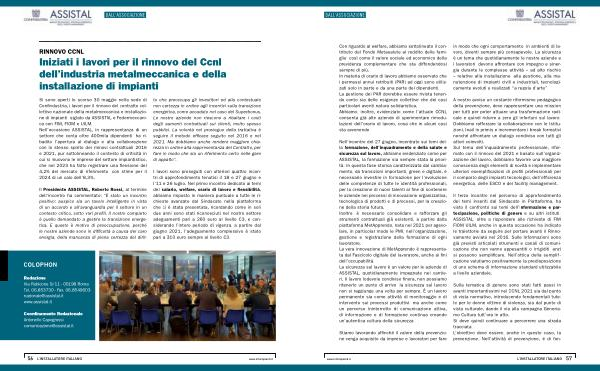 Si sono aperti lo scorso 30 maggio nella sede di Confindustria , i lavori per il rinnovo del contratto collettivo nazionale della metalmeccanica e installazione di impianti , siglato da ASSISTAL e Federmeccanica con FIM , FIOM e UILM . Nell ’ occasione ASSISTAL , in rappresentanza di un settore che conta oltre 400mila dipendenti , ha ribadito l ’ apertura al dialogo e alla collaborazione con lo stesso spirito dei rinnovi contrattuali 2016 e 2021 , pur sottolineando il contesto di criticità in cui si muovono le imprese del settore impiantistico , che nel 2023 ha fatto registrare una flessione del 4,2 % del mercato di riferimento , con stime per il 2024 di un calo dell ’ 8,3 %.