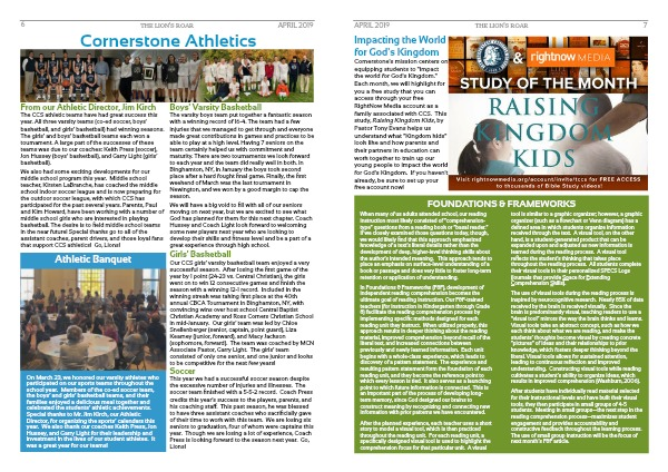We also had some exciting developments for our middle school program this year. Middle school teacher, Kirsten LaBranche, has coached the middle school indoor soccer league and is now preparing for the outdoor soccer league, with which CCS has participated for the past several years. Parents, Paul and Kim Howard, have been working with a number of middle school girls who are interested in playing basketball. The desire is to field middle school teams in the near future! Special thanks go to all of the assistant coaches, parent drivers, and those loyal fans that support CCS athletics! Go, Lions!