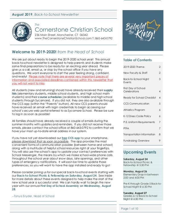 August 2019, Back-to-School Newsletter