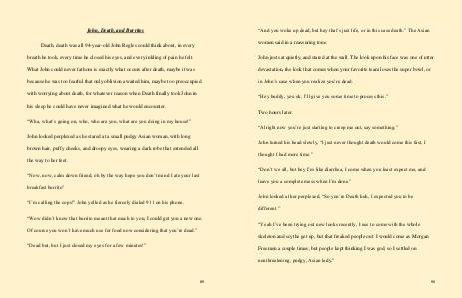 John looked at her perplexed, “So you’re Death huh, I expected you to be