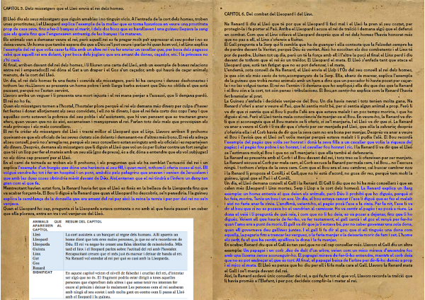 Mentrestant havien estat fora, la Renard havia fet que el Lleó es fixés en la bellesa de la Lleoparda fins que va acabar forçant-la. El Bou li digué a la Renard que quan el Lleopard ho descobrís, se'n penediria. I la guineu explica la semblança de la donzella que era amant del rei per això la reina la temia i per por del rei no se'n venjava.