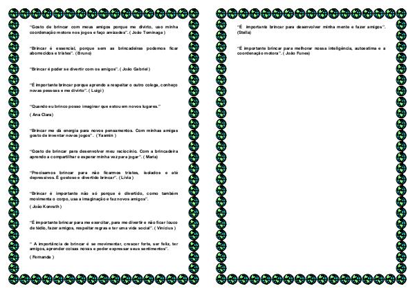 “É importante brincar para desenvolver minha mente e fazer amigos”.