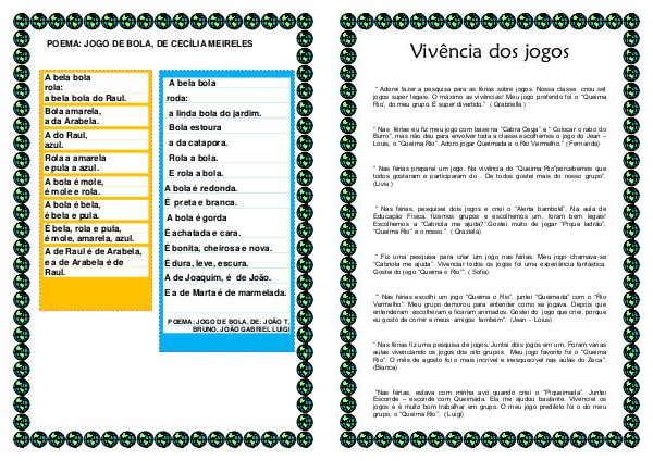 “ Adorei fazer a pesquisa para as férias sobre jogos. Nossa classe criou set