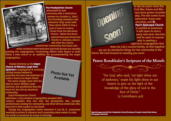 white residents were welcome and both groups are steadily growing the congregation. Fundraising efforts have begun to build either a new church or an addition for accommodating the larger congregation.