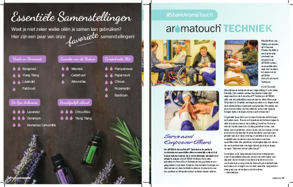 De dōTERRA AromaTouch™ Techniek is de perfecte combinatie van essentiële oliën en menselijk contact. Het brengt iedereen samen door met individuele aandacht voor elkaar te zorgen. Veel dōTERRA Wellness-Advocates gebruiken de AromaTouch Techniek als een geschenk en een gelegenheid om anderen te helpen. Hun verhalen moedigen ons allemaal aan om deze techniek te delen en te ervaren hoe we een positieve en liefdevolle invloed op elkaar kunnen hebben.