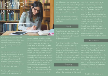 much through simple, visual methods – a great revising tip for a kinaesthetic learner is to continually