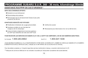 • Remorquage vers le concessionnaire Subaru le plus près ( maximum de 360 km )
