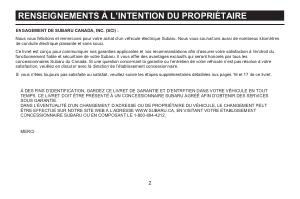 À DES FINS D ’ IDENTIFICATION , GARDEZ CE LIVRET DE GARANTIE ET D ’ ENTRETIEN DANS VOTRE VÉHICULE EN TOUT TEMPS . CE LIVRET DOIT ÊTRE PRÉSENTÉ À UN CONCESSIONNAIRE SUBARU AGRÉÉ AFIN D ’ OBTENIR DES SERVICES SOUS GARANTIE . DANS L ’ ÉVENTUALITÉ D ’ UN CHANGEMENT D ’ ADRESSE OU DE PROPRIÉTAIRE DU VÉHICULE , LE CHANGEMENT PEUT ÊTRE EFFECTUÉ SUR NOTRE SITE WEB À L ’ ADRESSE