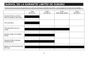SURVOL DE LA GARANTIE LIMITÉE DE SUBARU