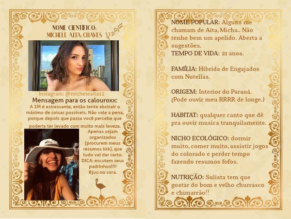 NOME POPULAR: Alguns me chamam de Aita, Micha.. Não tenho bem um apelido. Aberta a sugestões.