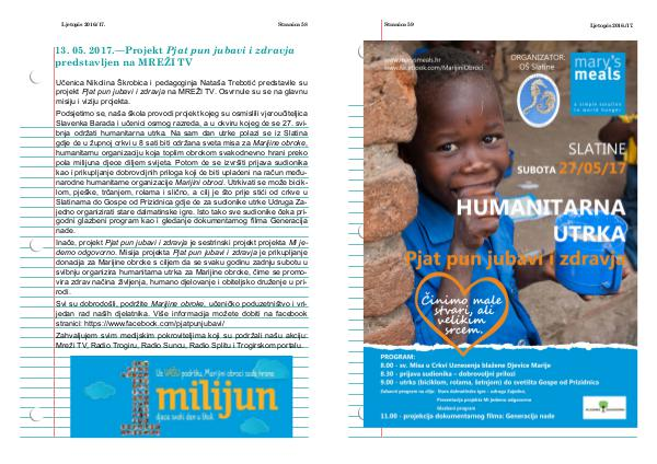 svibnju organizira humanitarna utrka za Marijine obroke, čime se promo-
