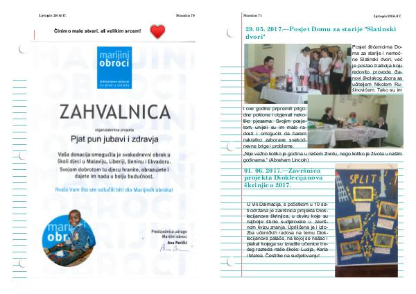 Ljetopis 2016./17. Činimo male stvari, ali velikim srcem! Stranica 70