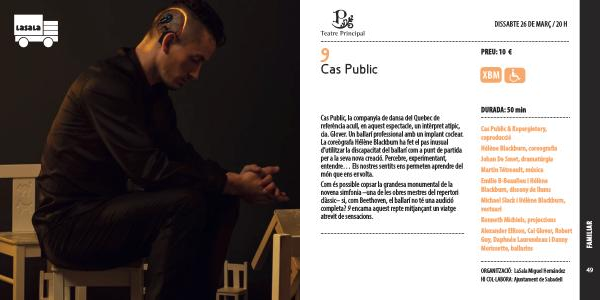 Cas Public , la companyia de dansa del Quebec de referència acull , en aquest espectacle , un intèrpret atípic , cia . Glover . Un ballarí professional amb un implant coclear . La coreògrafa Hélène Blackburn ha fet el pas inusual d ’ utilitzar la discapacitat del ballarí com a punt de partida per a la seva nova creació . Percebre , experimentant , entendre … Els nostres sentits ens permeten aprendre del món que ens envolta .