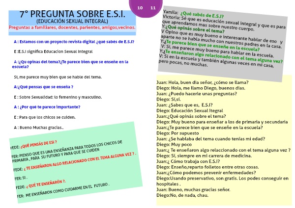 A : Estamos con un proyecto revista digital ¿qué sabés de E.S.I?