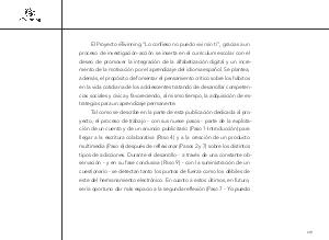 Tal como se describe en la parte de esta publicación dedicada al proyecto, el proceso de trabajo- con sus nueve pasos- parte de la explotación de un cuento y de un anuncio publicitario( Paso 1-Introducción) para llegar a la escritura colaborativa( Paso 4) y a la creación de un producto multimedia( Paso 6) después de reflexionar( Pasos 2 y 7) sobre los distintos tipos de adicciones. Durante el desarrollo- a través de una constante observación- y en su fase conclusiva( Paso 9)- con la suministración de un cuestionario- se detectan tanto los puntos de fuerza como los débiles de este del hermanamiento electrónico. En cuanto a estos últimos, en futuro, sería oportuno dar más espacio a la segunda reflexión( Paso 7- Yo puedo
