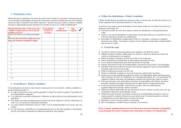 Maintenant que le marketing et les cibles des ventes ont été vérifiés et convenues le long des parcours vers le marché, les participants nécessiteront d’ actions de ventes pour chaque parcours vers le marché afin de les aider à rencontrer leurs cibles respectives. Assurez-vous que ce plan est réaliste et détaillé afin que les participants puissant commencer à le mettre en œuvre et à vendre immédiatement.