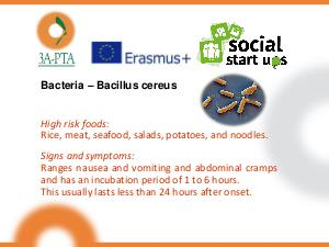 High risk foods: Rice, meat, seafood, salads, potatoes, and noodles.