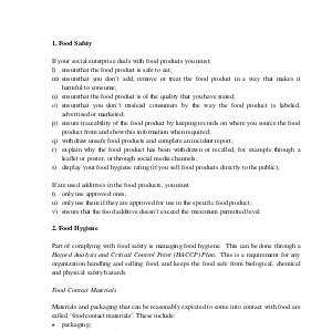 If your social enterprise deals with food products you must: l) ensurethat the food product is safe to eat; m) ensurethat you don ‟ t add, remove or treat the food product in a way that makes it harmful to consume; n) ensurethat the food product is of the quality that you have stated; o) ensurethat you don ‟ t mislead consumers by the way the food product is labeled, advertised or marketed; p) ensure traceability of the food product by keeping records on where you source the food product from and show this information when required; q) withdraw unsafe food products and complete an incident report; r) explain why the food product has been withdrawn or recalled, for example through a leaflet or poster, or through social media channels; s) display your food hygiene rating( if you sell food products directly to the public);