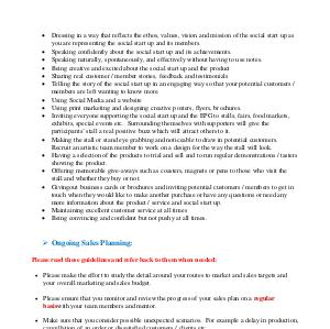 � Givingout business cards or brochures and inviting potential customers / members to get in touch when they would like to make another purchase or have any questions or need any more information about the product / service and social start up. � Maintaining excellent customer service at all times � Being convincing and confident but not pushy at all times.