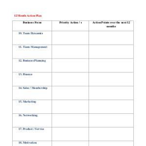 12 Month Action Plan