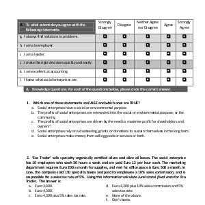 g. I always find solutions to problems. � � � � � h. I am a team player. � � � � � i. I am a leader. � � � � � j. I make the right decisions quickly and easily. � � � � � k. I am excellent at accounting. � � � � � l. I know what social enterprises are. � � � � � A. Knowledge Questions: For each of the questions below, please circle the correct answer.