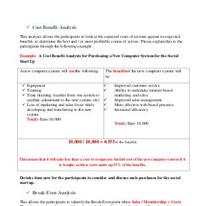 Example: A Cost Benefit Analysis for Purchasing a New Computer System for the Social Start Up