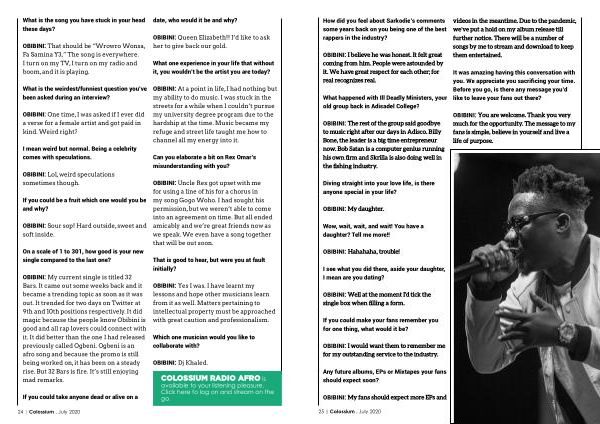 OBIBINI : At a point in life , I had nothing but my ability to do music . I was stuck in the streets for a while when I couldn ’ t pursue my university degree program due to the hardship at the time . Music became my refuge and street life taught me how to channel all my energy into it .