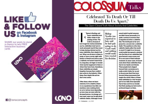 Bishop Nyarko was reported to have said he had quit acting to do ‘ God ’ s work ’ and nothing would make him rescind his decision sound weird to grief someone we didn ’ t know personally , it is quite a normal occurrence that is experienced when a celebrity dies . The world goes as far as to pause for a second over a celebrity death . The question is ; why does celebrity deaths affect the world so much ? It might be so because , social media has opened a window into the lives of our celebrities that goes beyond a mere screen and let us see some of their intimate moments . In many cases , we know more about these celebrities than that of our family and friends . These people have stepped beyond their conveniences to make society better for us and in the process ; their lives have become living monuments that inspire the world . Many of these dead celebrities in a way became part of our daily lives especially that of fans and it is no wonder that their passing can have such a profound impact on them .