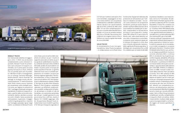 Construction Equipment dedicata alla produzione di attrezzature per l ’ edilizia e le industrie correlate - tre veicoli a zero emissioni con propulsione full electric , pronti per essere messi in strada e usufruire delle soluzioni che la Casa svedese ha studiato per la clientela , comprendenti le infrastrutture di ricarica : il carro Volvo FE e i trattori Volvo FM e Volvo FH . Il carro Volvo FE Electric 6x2 , sullo stand allestito con una cella a temperatura controllata , si propone come soluzione ideale per le missioni di trasporto in città , dove sono richieste silenziosità , manovrabilità , agilità ed efficienza operativa . Si distingue per una potenza fino a 408 CV , 4 batterie per un totale di 265 kWh